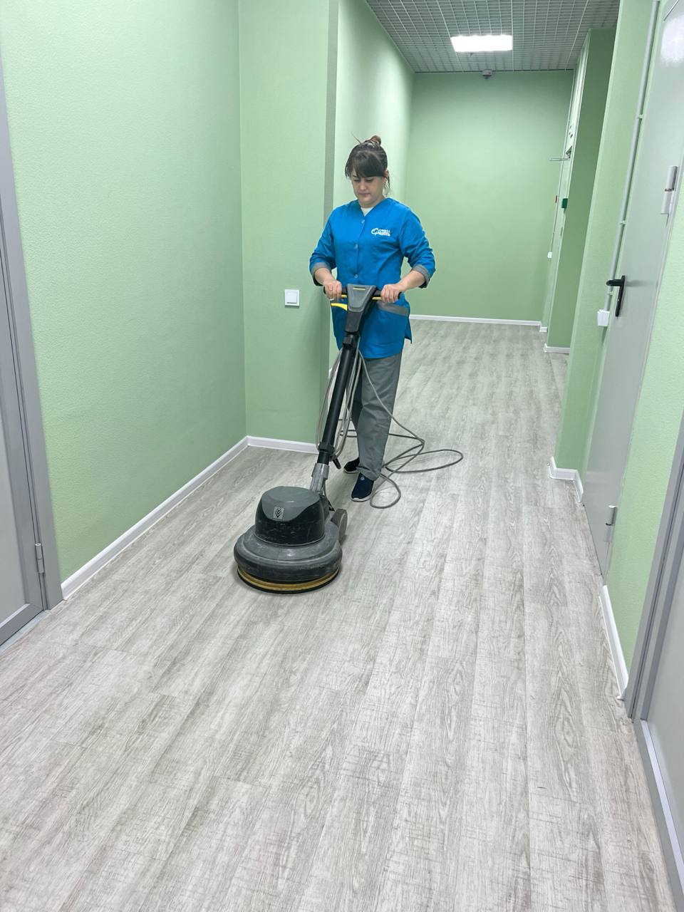 - Провели глубокую механическую мойку полов роторной машиной для удаления стойких загрязнений.