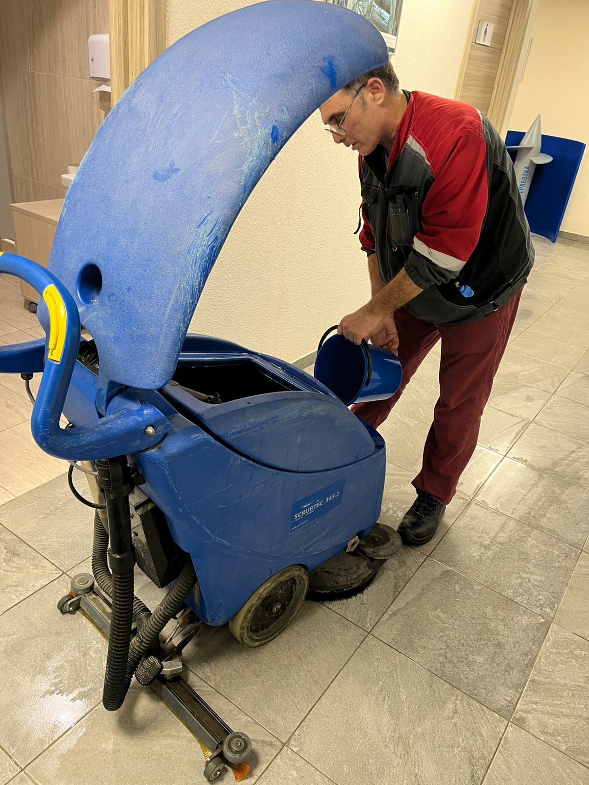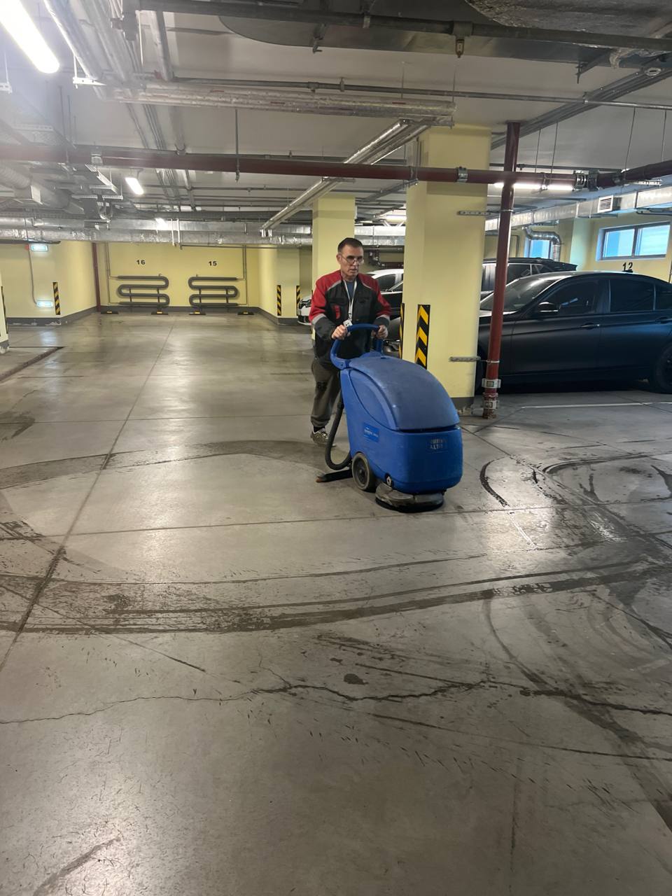 - Провели глубокую механическую мойку полов роторной машиной для удаления стойких загрязнений.