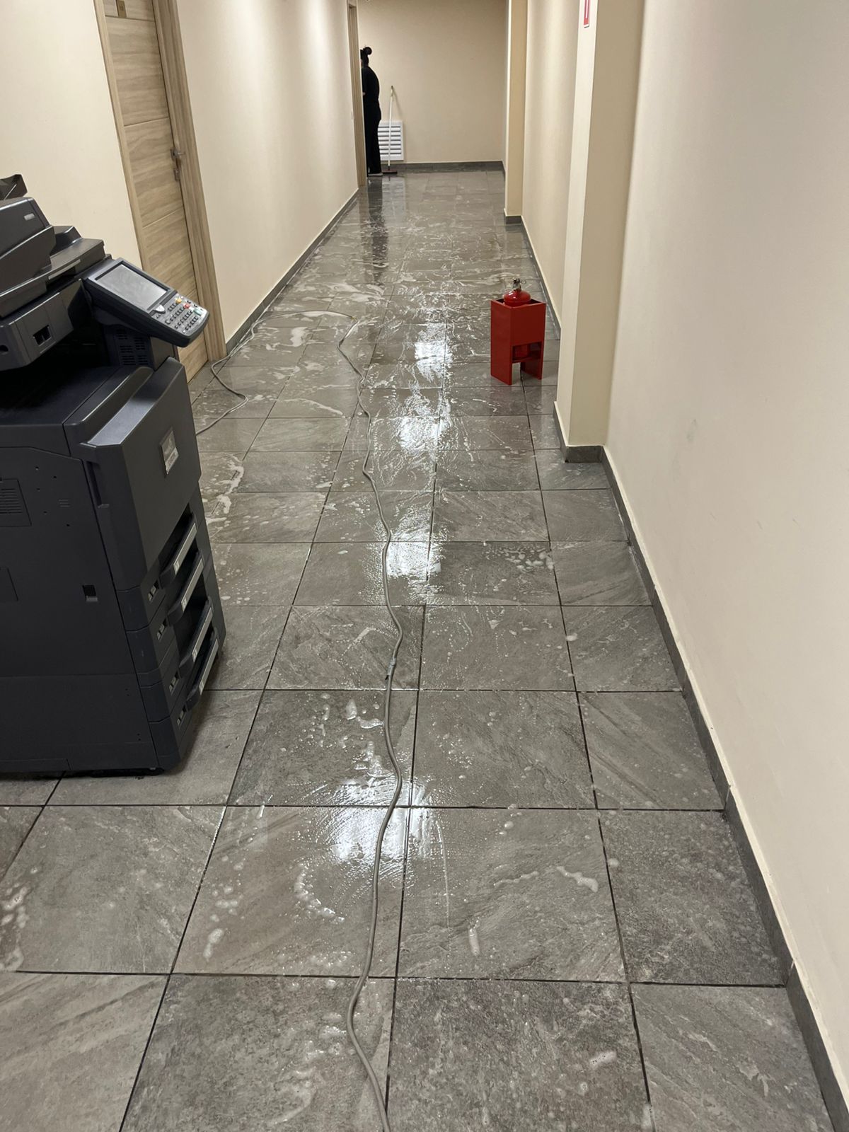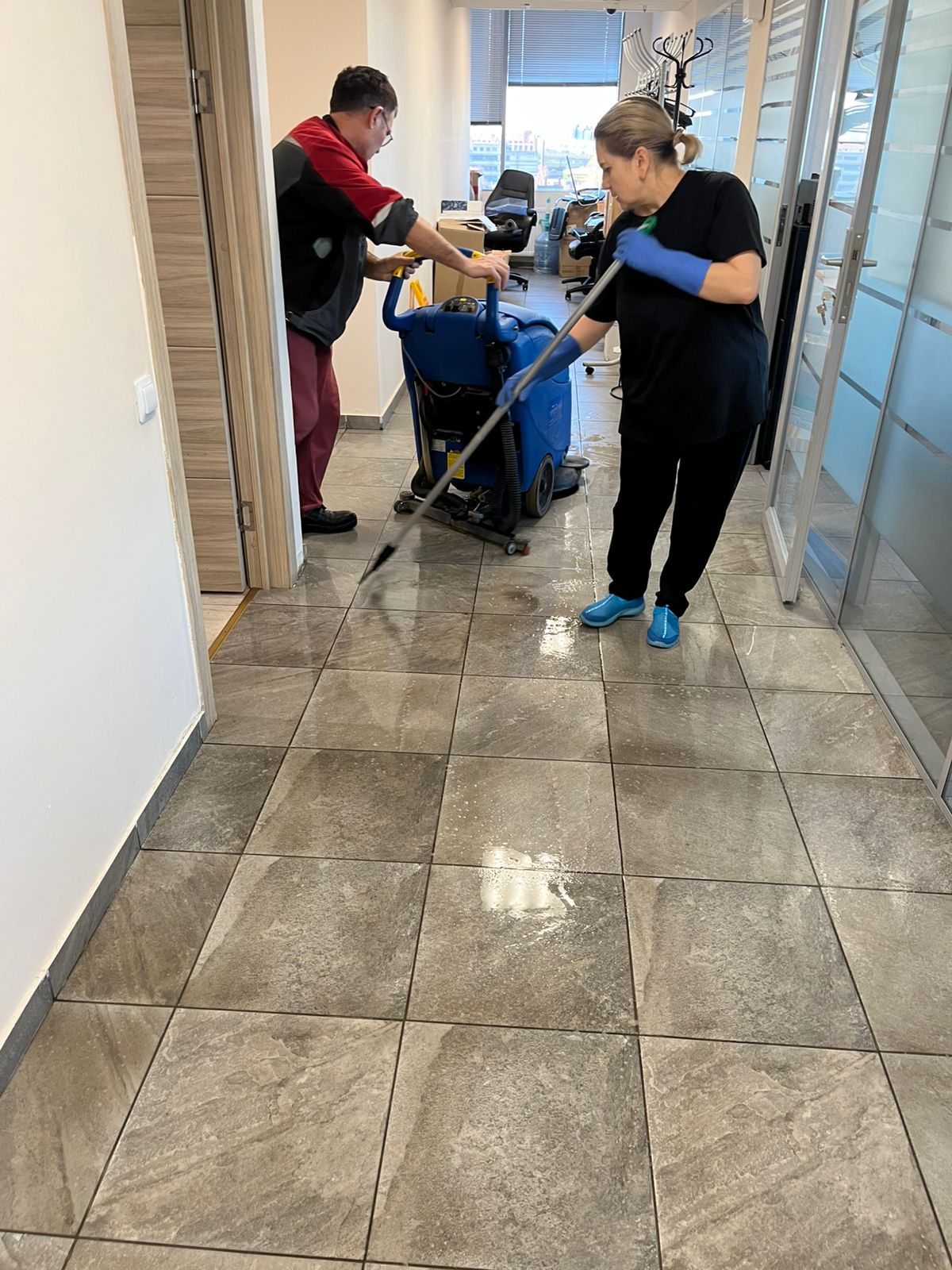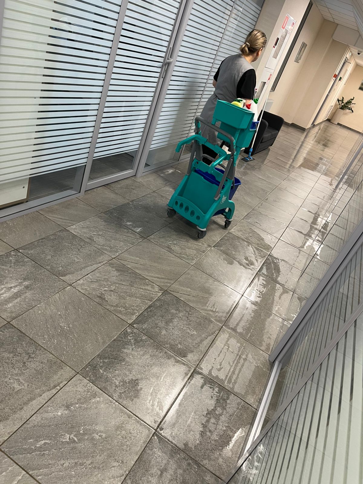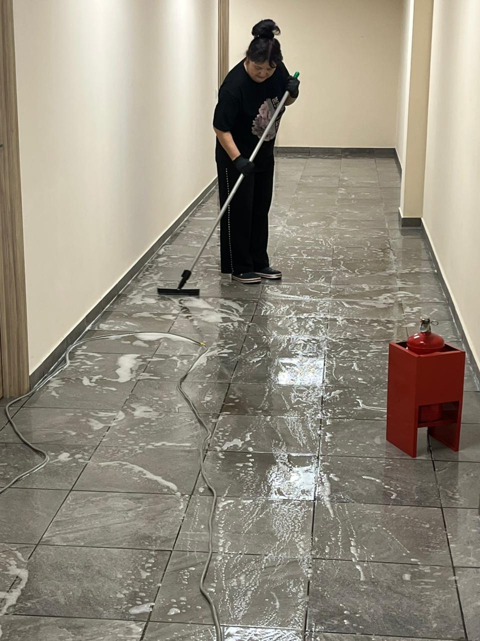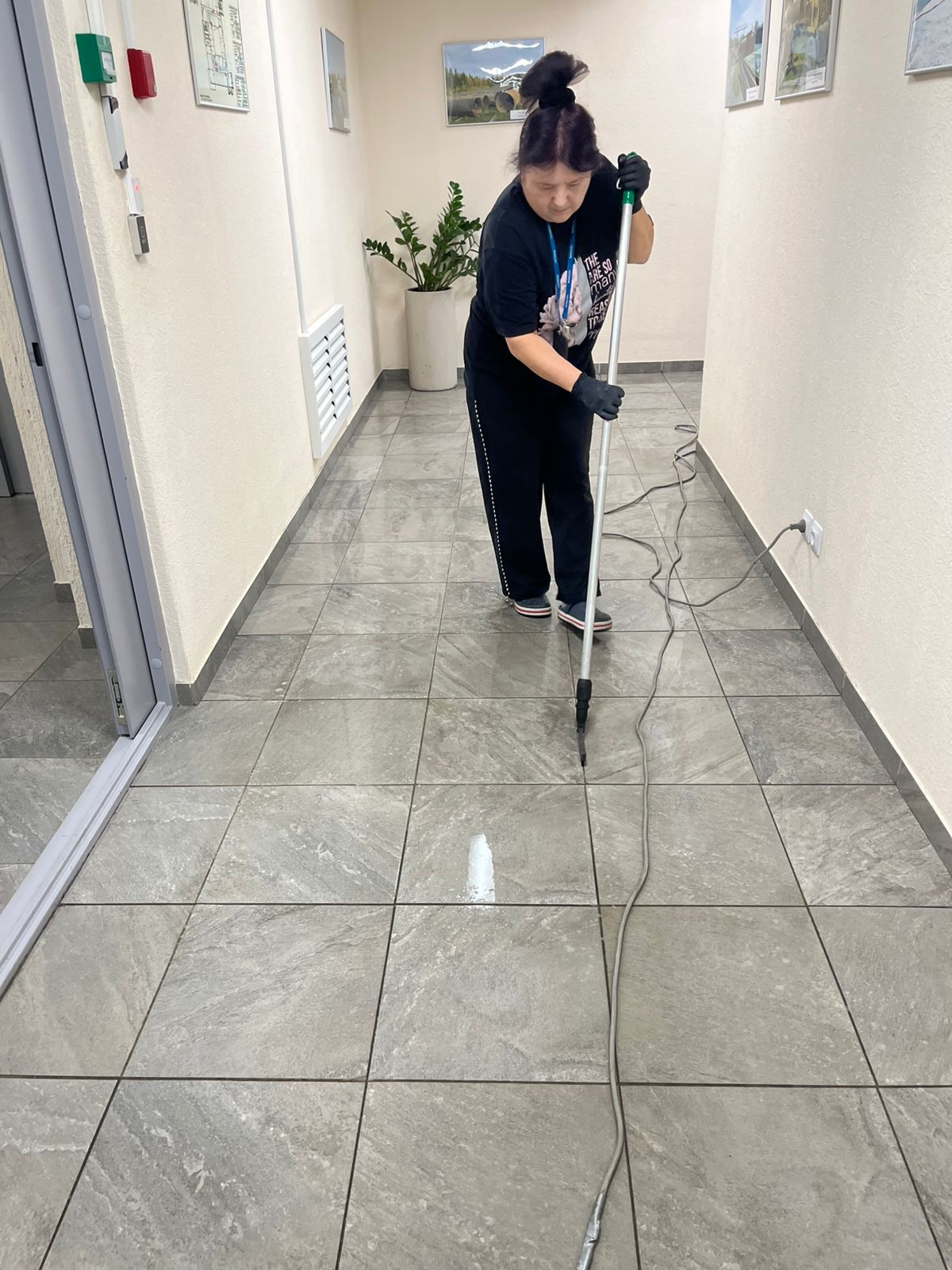 - Пропылесосили ковровые покрытия и помыли полы в зонах с твердым покрытием.